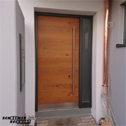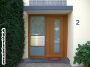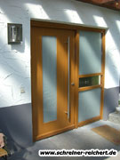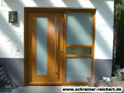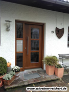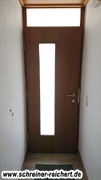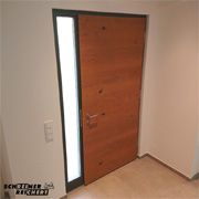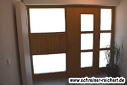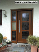Haustür in Mahagoni mit Seitenteil und Briefkastenelement.