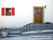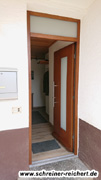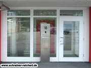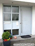 Seitenteil mit Briefkasten, Klingel und Sprechanlage in Edelstahlblende.