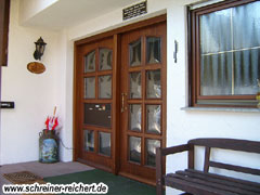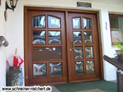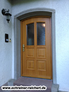 Glasrahmen und Füllungen profiliert, Oberfläche Eiche hell.