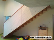 Trittstufen in Buche mit eingefrästen Antirutschprofilen.