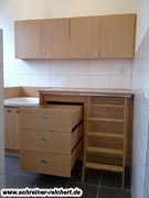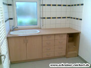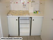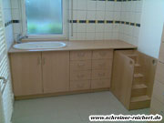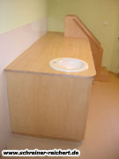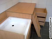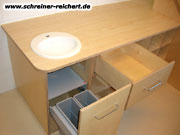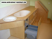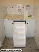 Mit Handwaschbecken, Treppe und Abfallsammler.