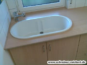 Mit großem Badebecken, Treppe und Abfallsammler.